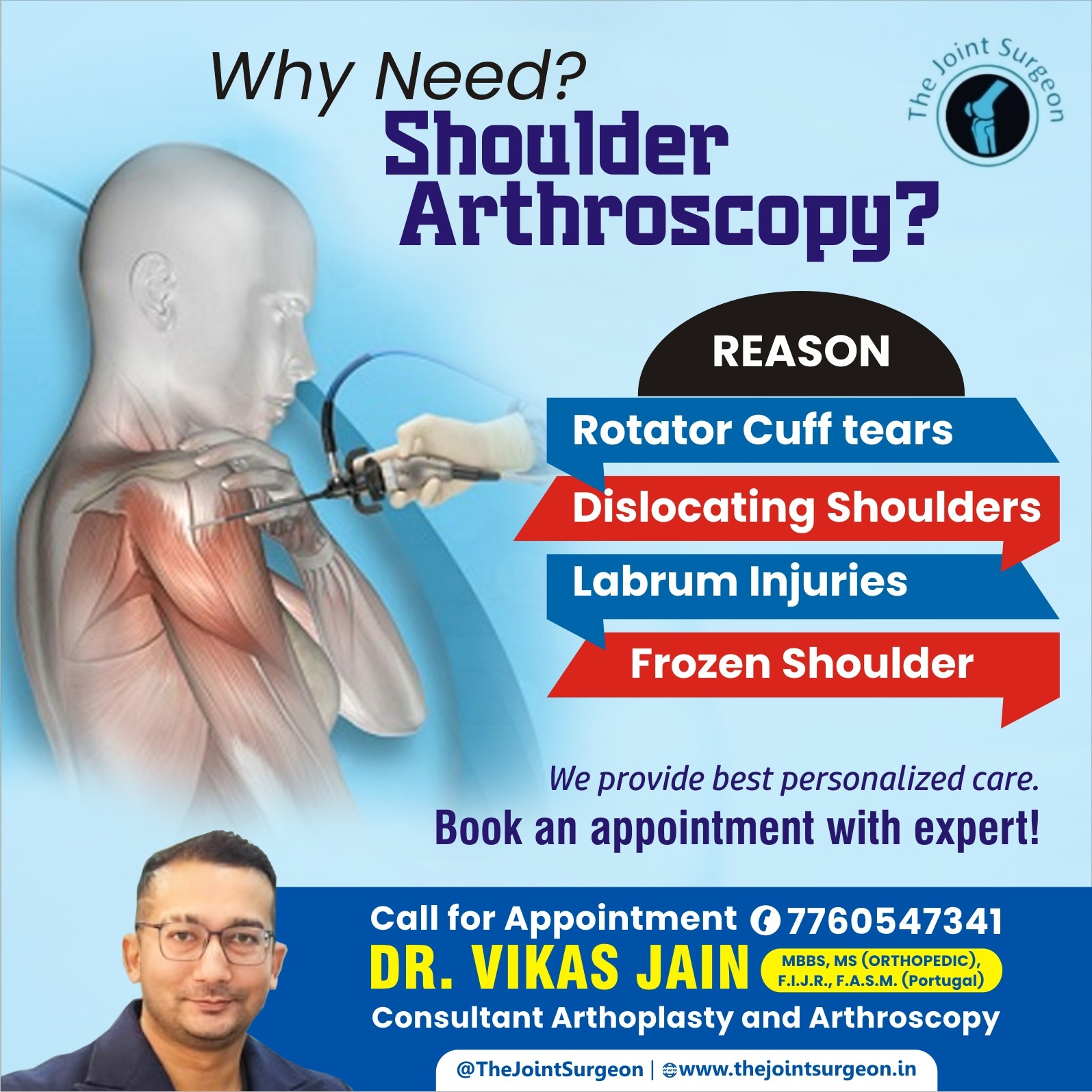 Trusted by thousands in Indore, Dr. Vikas Jain combines skill, compassion, and dedication to provide comprehensive shoulder care. For anyone experiencing chronic pain, stiffness, or injury-related discomfort, consulting Dr. Vikas Jain ensures professional guidance and successful recovery.