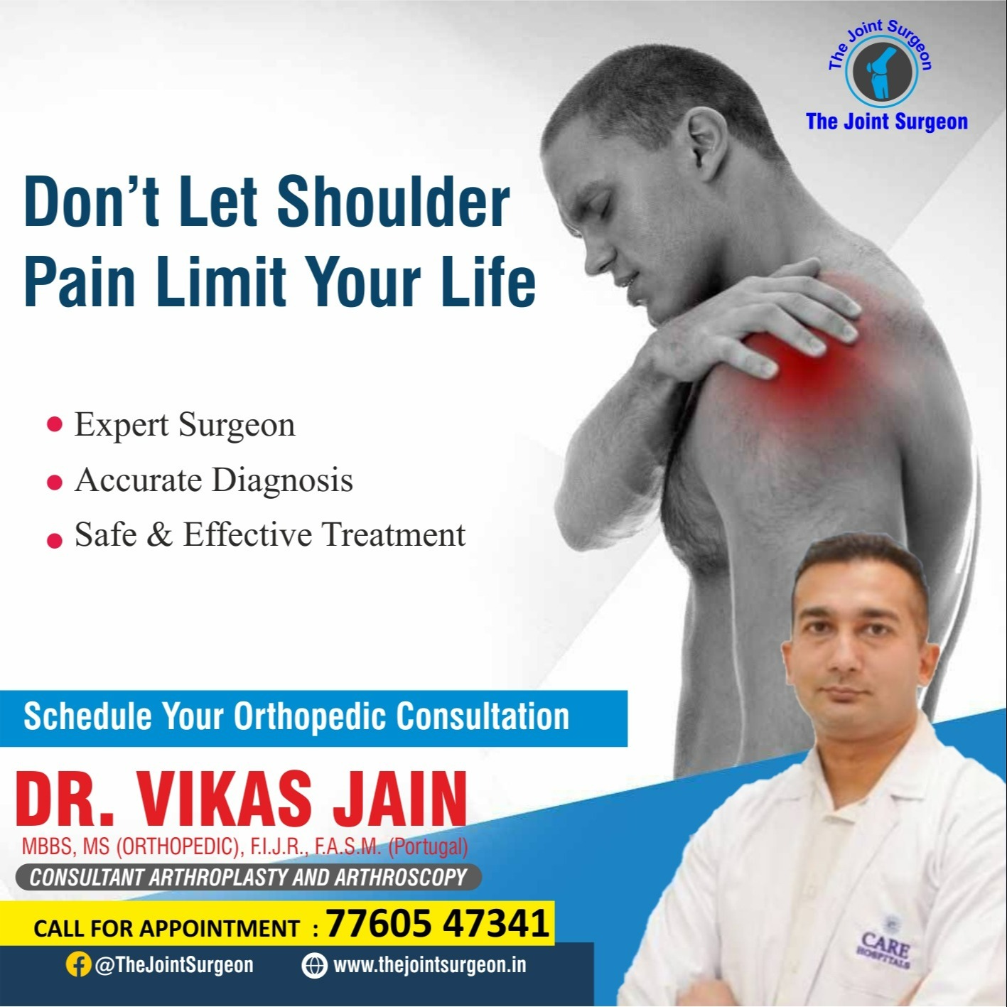 Dr. Vikas Jain is recognized as the best doctor for shoulder pain treatment in Indore, offering expert care for a wide range of shoulder conditions including frozen shoulder, rotator cuff injuries, arthritis, dislocations, and sports-related pain. With extensive experience in orthopedic medicine and a patient-centric approach, Dr. Vikas Jain best orthopedic doctor in Indore provides accurate diagnosis, personalized treatment plans, and effective pain relief using the latest techniques and therapies. Whether your discomfort is due to injury, overuse, or chronic conditions, he focuses on restoring mobility, improving strength, and enhancing quality of life. Patients trust Dr. Jain for his compassionate care, clear communication, and successful outcomes. His clinic in Indore is equipped with advanced diagnostic tools to ensure precise evaluation and targeted treatment. For dependable, professional shoulder pain treatment and long-term relief, consult Dr. Vikas Jain—Indore’s top choice for orthopedic shoulder care.