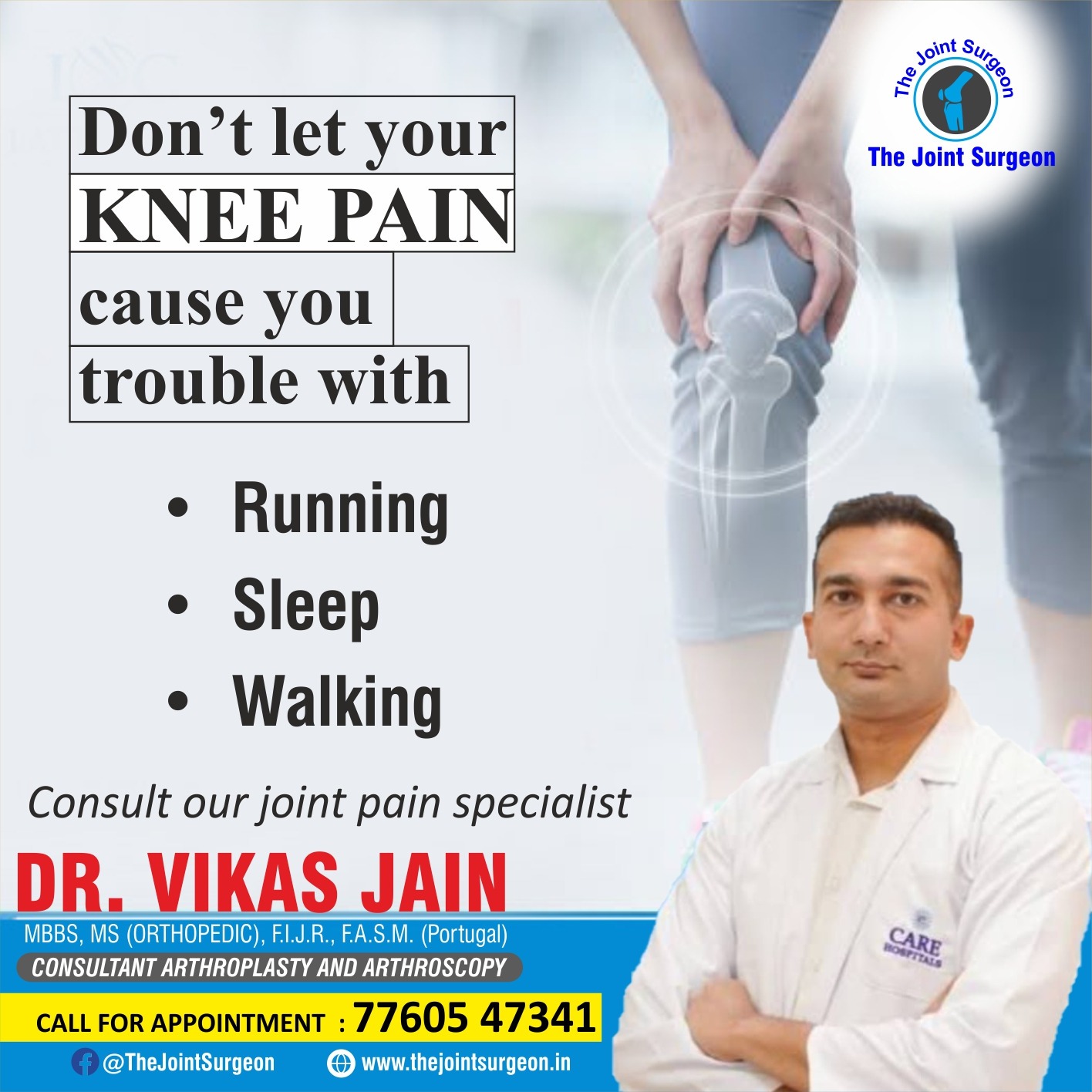 For more details on total knee replacement/ robotic total knee replacement, please visit our website for knee issues created by Dr Vikas jain-