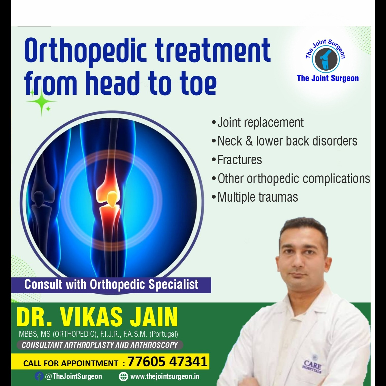 Dr. Vikas Jain is widely regarded as the best orthopedic specialist in Indore, known for his expert care, compassionate approach, and outstanding clinical results. With extensive experience in diagnosing and treating a wide range of orthopedic conditions, Dr. Vikas Jain provides advanced care for joint pain, sports injuries, fractures, arthritis, back and neck problems, and more. His deep understanding of musculoskeletal health and commitment to evidence-based treatment strategies ensure that each patient receives personalized, effective care tailored to their unique needs.
