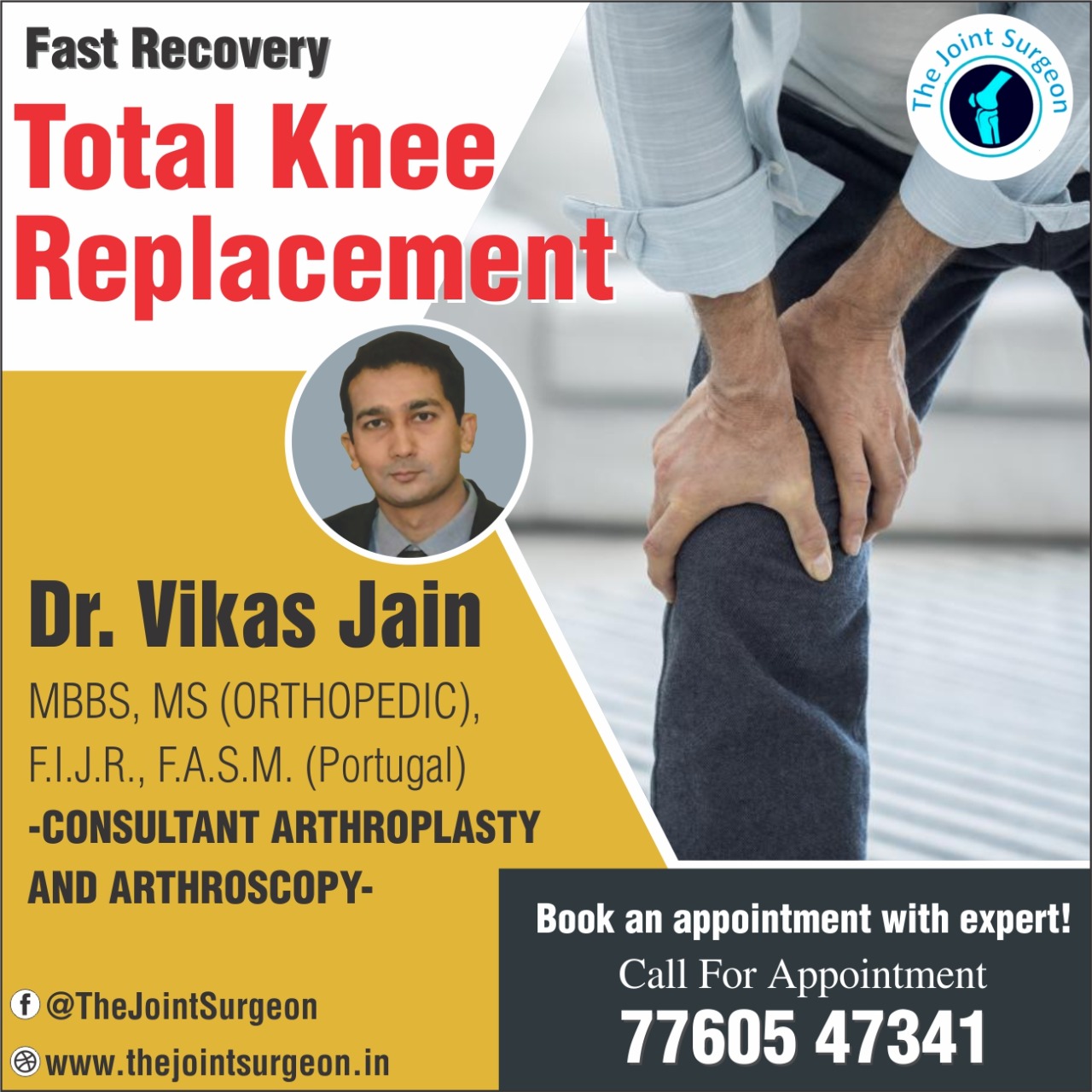 Knee Surgery Specialist In Indore Dr. Vikas Jain In Indore is known as one of the best joint surgeon. If you or any of your known is suffering with joint problems then Dr. Vikas Jain provides you the complete help. Book your appointment with us.