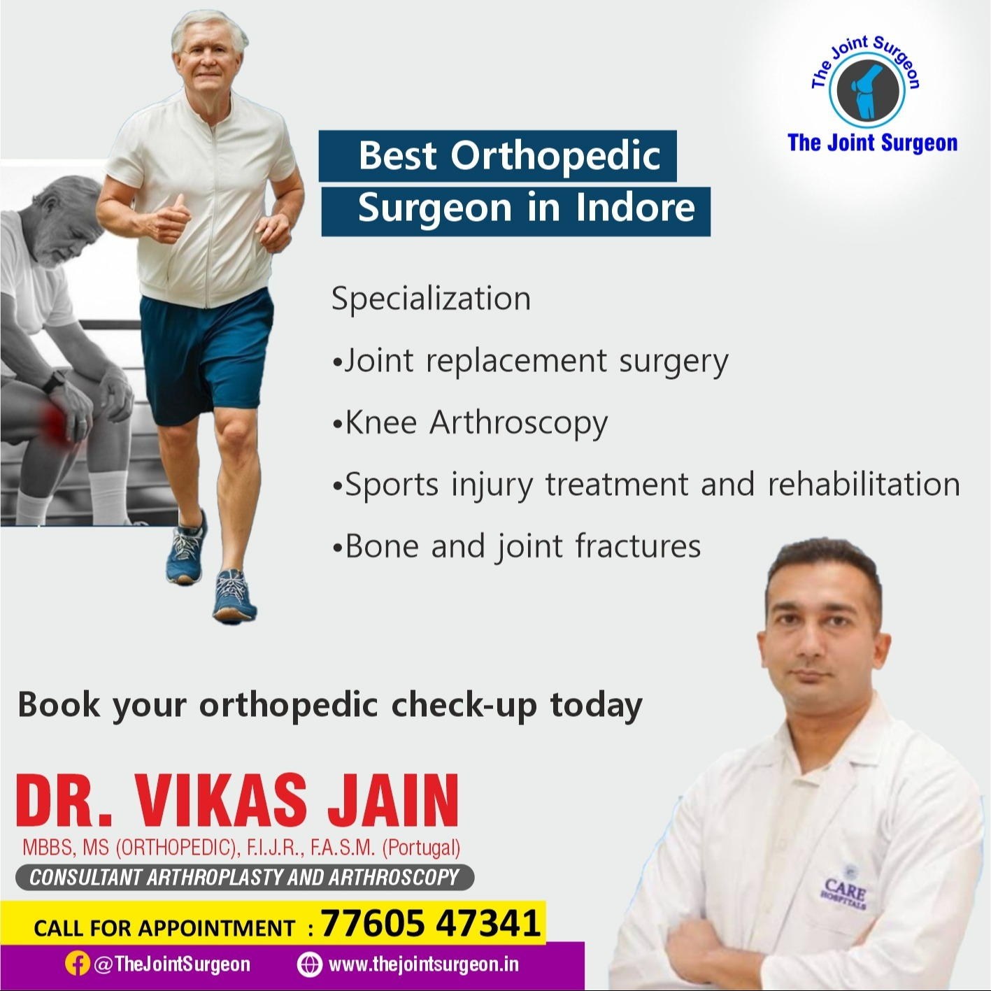 Dr. Vikas Jain is a highly trusted orthopedic surgeon for knee and hip treatment in Indore, known for delivering advanced and patient-focused orthopedic care. He specializes in the diagnosis and treatment of knee pain, hip pain, arthritis, ligament injuries, fractures, sports injuries, and degenerative joint conditions. Dr. Vikas Jain best orthopedic doctor in Indore offers both non-surgical treatments such as medications, physiotherapy, and injections, as well as advanced surgical procedures including knee replacement and hip replacement surgery when required. His approach focuses on accurate diagnosis, minimally invasive techniques, and faster recovery with long-term pain relief. Patients appreciate his clear communication, compassionate care, and personalized treatment plans. With modern medical techniques and a commitment to evidence-based practice, Dr. Vikas Jain helps patients regain mobility and improve their quality of life. For reliable knee and hip orthopedic care, consult Dr. Vikas Jain in Indore.