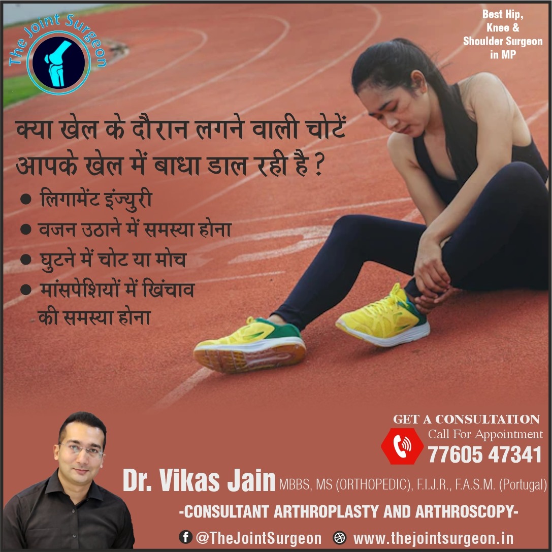खेल के दौरान चोट लगना आम बात है, लेकिन इससे आगे खेल खेलने में बाधा आ सकती है। लिगामेंट इंज्युरी, वजन उठाने में समस्या होना, घुटने में चोट या मोच, और मांसपेशियों में खिंचाव की समस्या खेल के दौरान होने वाली आम चोटें हैं। इन चोटों से बचने के लिए सही तकनीक का इस्तेमाल करना, नियमित रूप से वार्म-अप और स्ट्रेचिंग करना, और पर्याप्त आराम करना जरूरी होता है। डॉ. विकास जैन, जो की इंदौर के सर्वश्रेष्ठ जॉइंट रिप्लेसमेंट सर्जन मने जाते है वह कुछ टिप्स देते है जो आपको खेल के दौरान चोट लगने से बचाने में मदद कर सकते हैं। अगर आप सही तकनीक का इस्तेमाल करना, नियमित रूप से वार्म-अप और स्ट्रेचिंग करना, पर्याप्त आराम करना, अपने शरीर को पर्याप्त मात्रा में पोषण देंना जैसे इन सावधानियों का पालन करके आप अपने खेल को जारी रख सकते हैं और चोटों से बच सकते है। लेकिन यदि आप किसी चोट का अनुभव कर रहे हैं, तो तुरंत डॉ. विकास जैन, इंदौर के जाने माने ओर्थपेडीक डॉक्टर से संपर्क करें। वह आपकी चोट का सही निदान करके सही इलाज कर सकते हैं। समय पर इलाज न करने से चोट और गंभीर हो सकती है, जिससे खेल में वापसी में देरी हो सकती है। तो अभी संपर्क करे और खेल की चोट से निदान पाए।