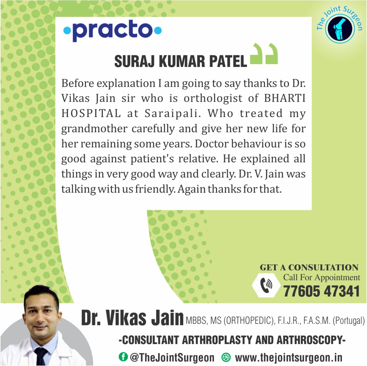 Patient Testimonial Thank you very much Suraj Kumar Patel for sharing your experience and positive feedback.
